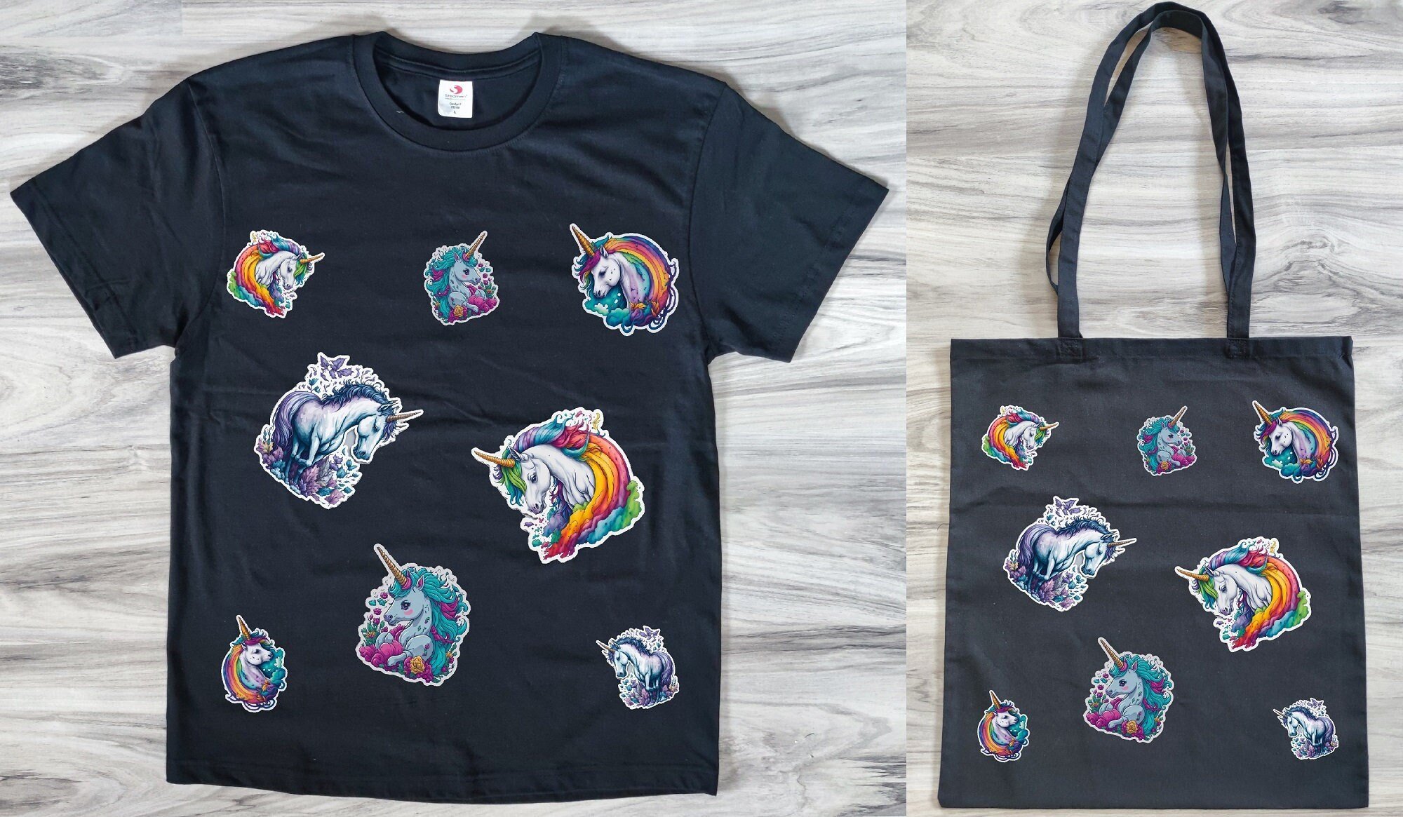 Kawaii Unicorns Graphic Tee and Tote Bag Set - Unique and Playful Design