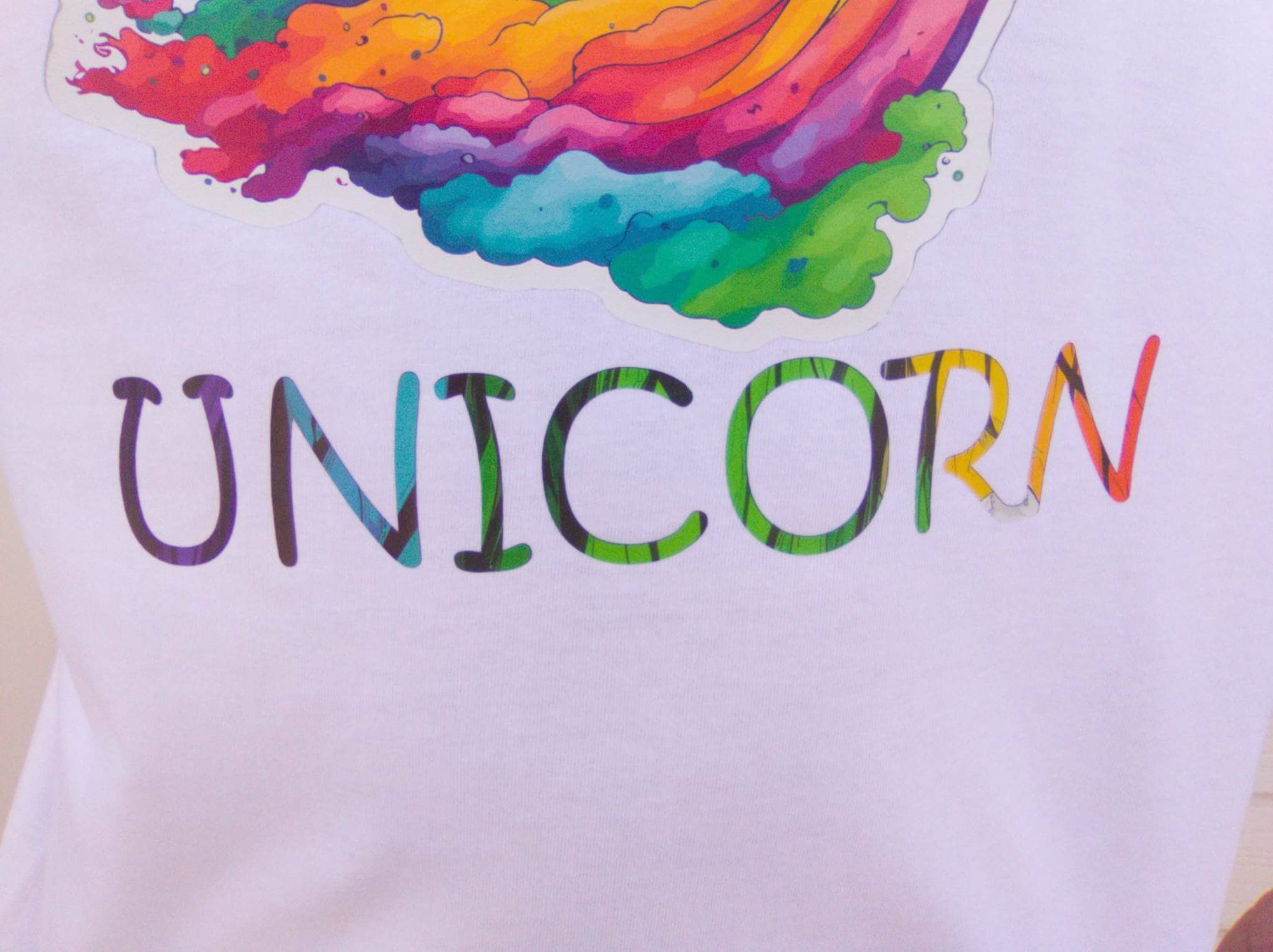 Our Rainbow Unicorn Graphic T-Shirt showcases a captivating unicorn design, adorned with a vibrant rainbow mane and a gleaming horn. It's a symbol of magic, positivity, and the power to dream. The high-quality print ensures that the colors stay vibrant after wash.