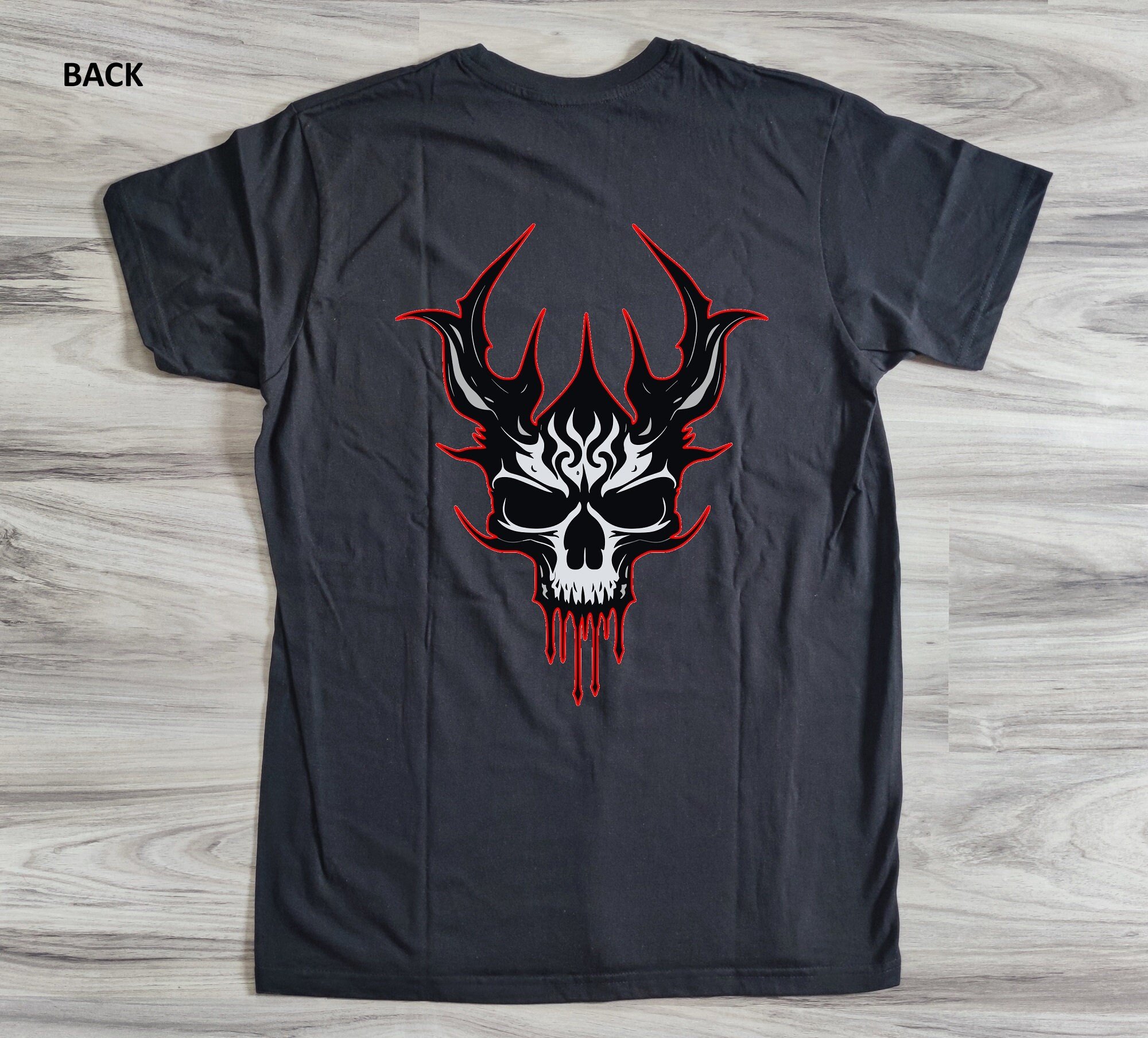 Skull Deamon T-Shirt - A Tribal Skull Graphic Tee - Tatoo Like Skull, Front and Back Design