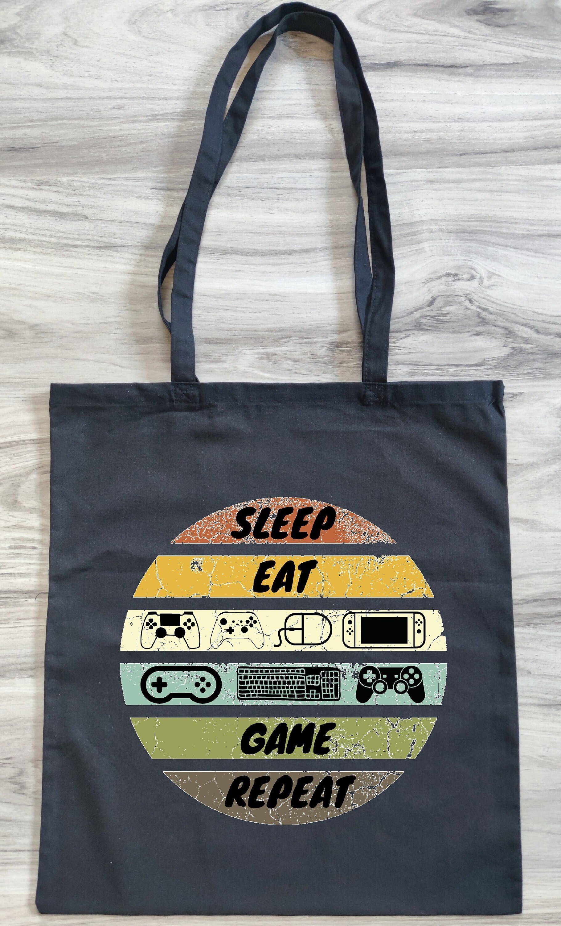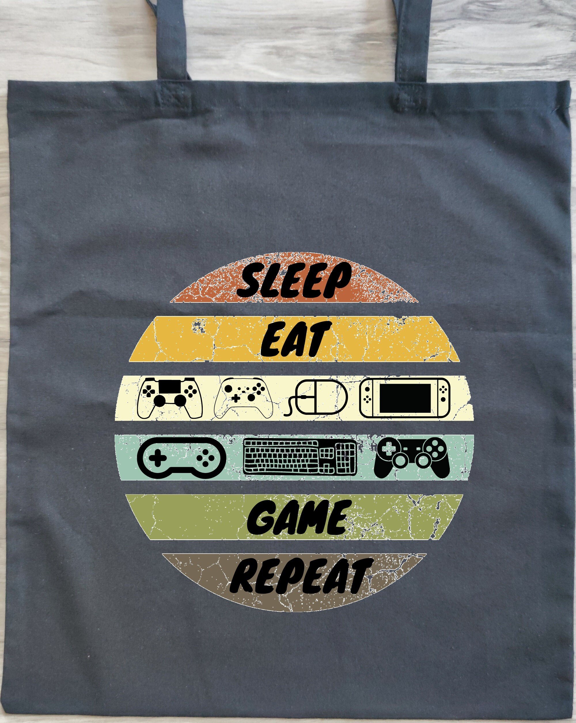 Sleep Eat Game Repeat Tote Bag - Epic Gaming Design - Unisex Gaming Shoulder Bag - Gamer Gift