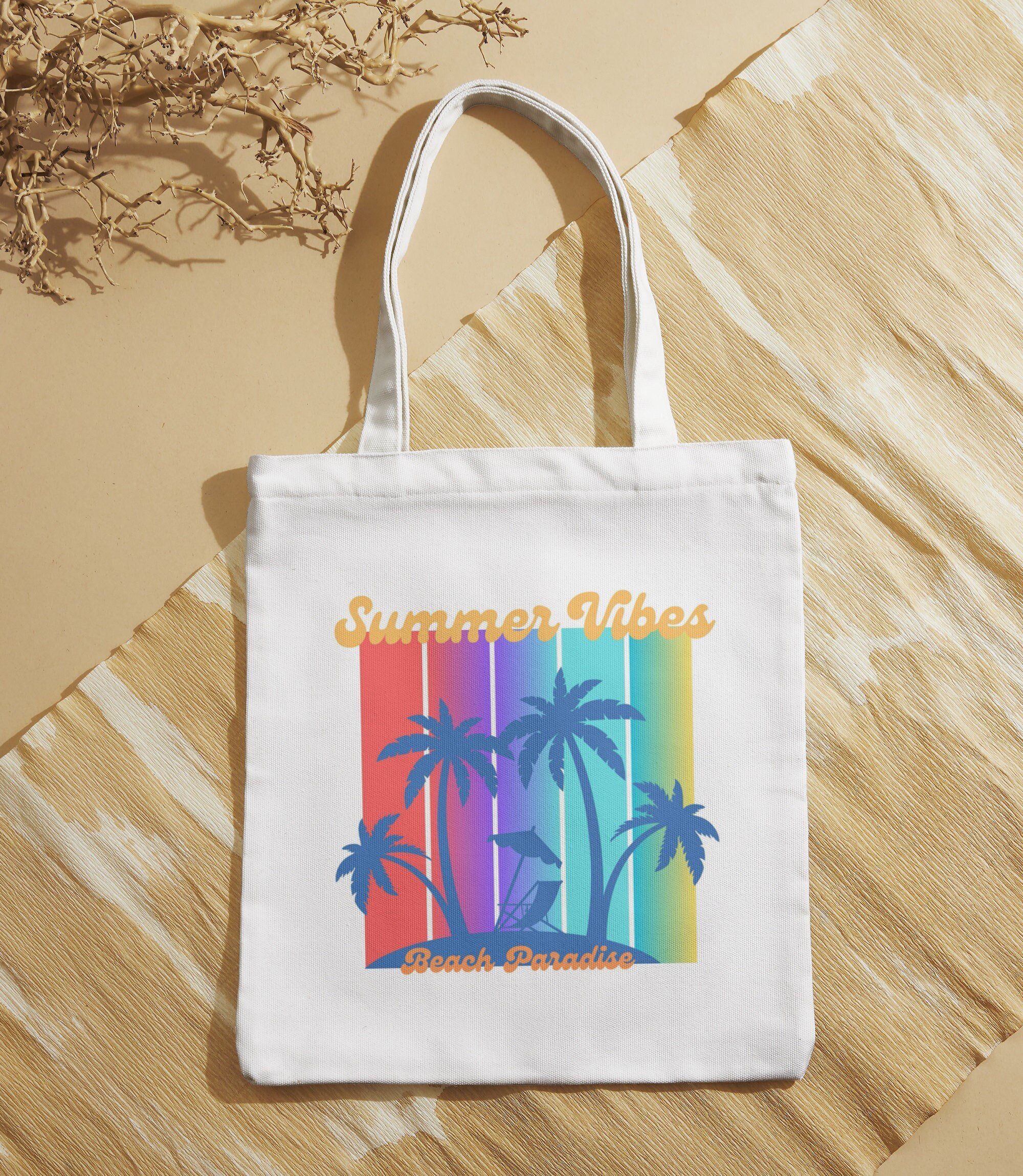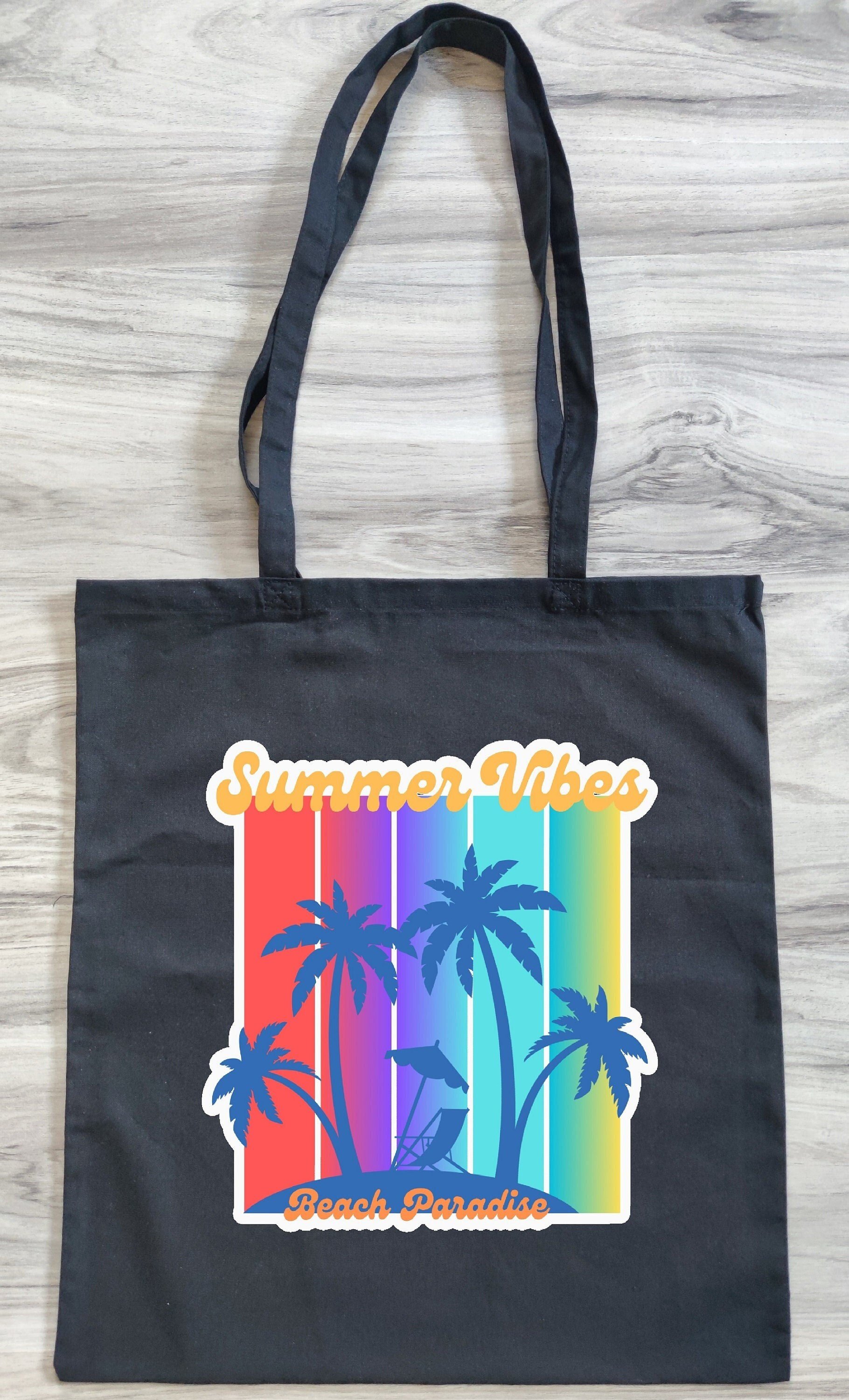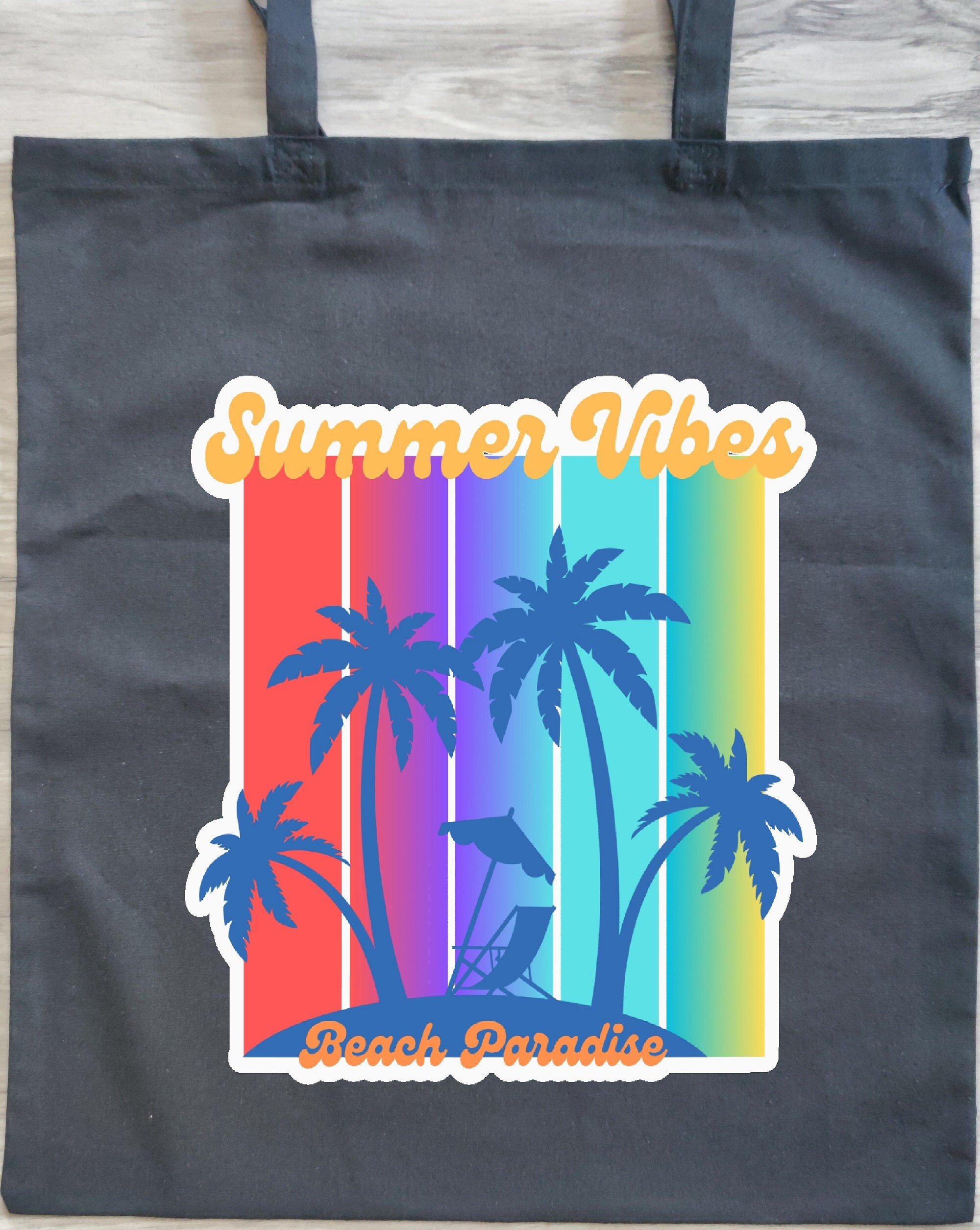 Summer Vibes Beach Paradise Tote Bag | Tropical Island Design | Reusable Shopping Bag